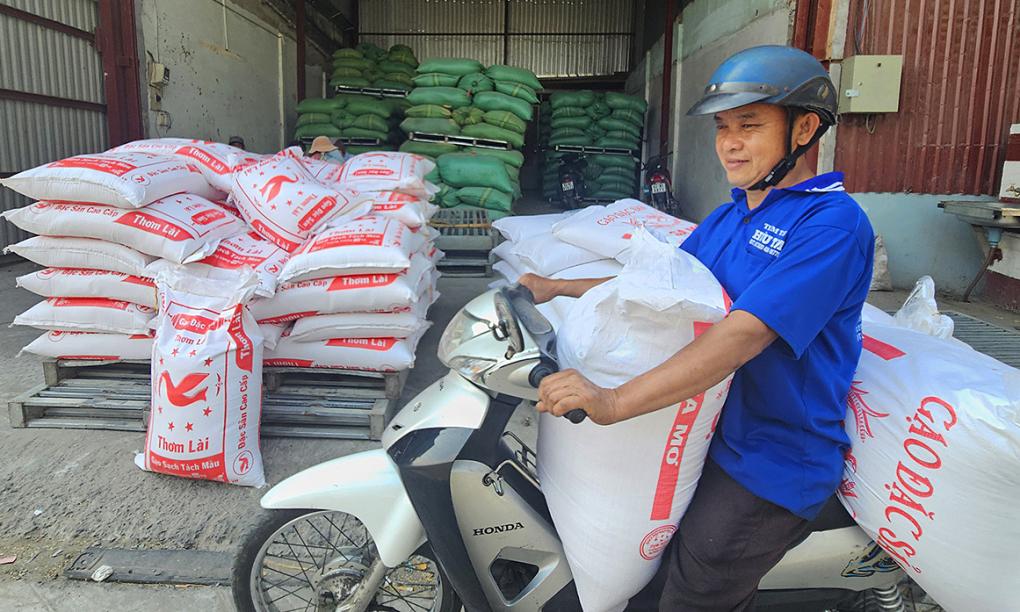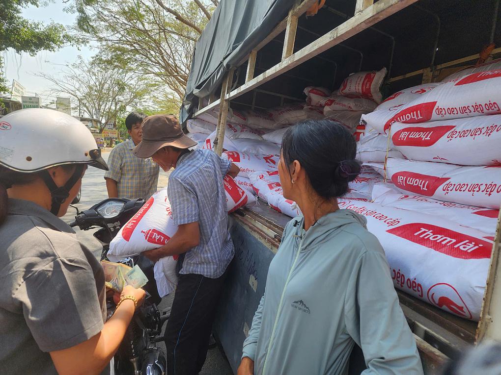 Một số tiểu thương ở Đồng Tháp, Bến Tre, Tiền Giang... dùng xe tải chở gạo, rao bán giá rẻ dọc các tuyến đường nông thôn...